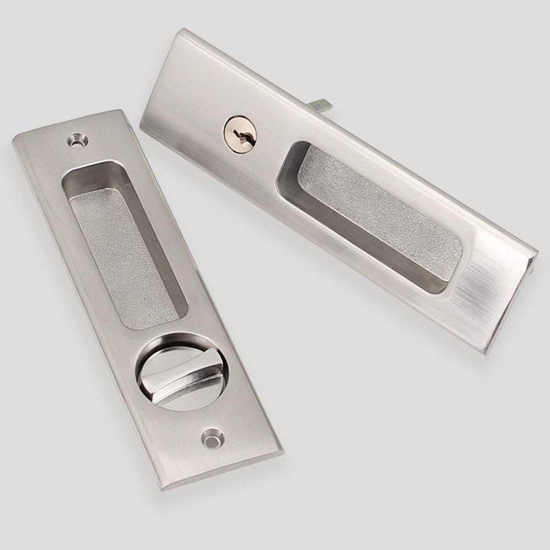 - ⭐Easy To Use -- This door lock fit for either left or right handed door, fit for Double sliding barn doors and pocket doors. This door lock can be bolted inside or locked outside. When it is bolted inside, it can be unlocked by the key from outside;