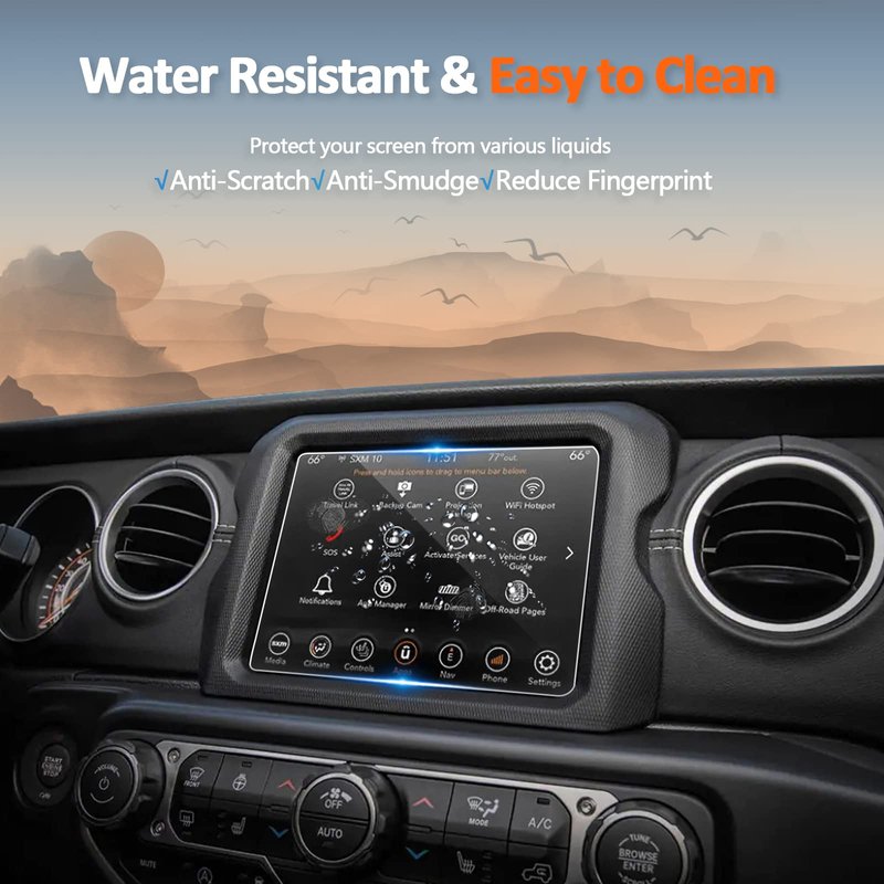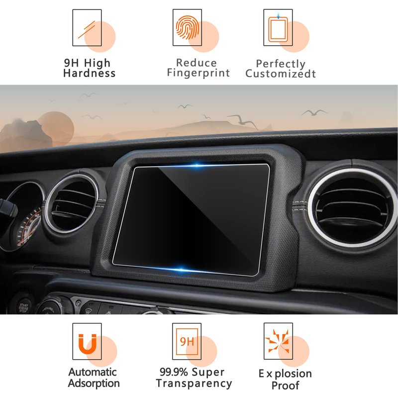 - SPECIALIZED CAR SCREEN PROTECTOR: Perfectly compatible with the (2020-2023) Jeep Gladiator / (2018-2023) Jeep Wrangler 8.4" audio multimedia display touchscreen.