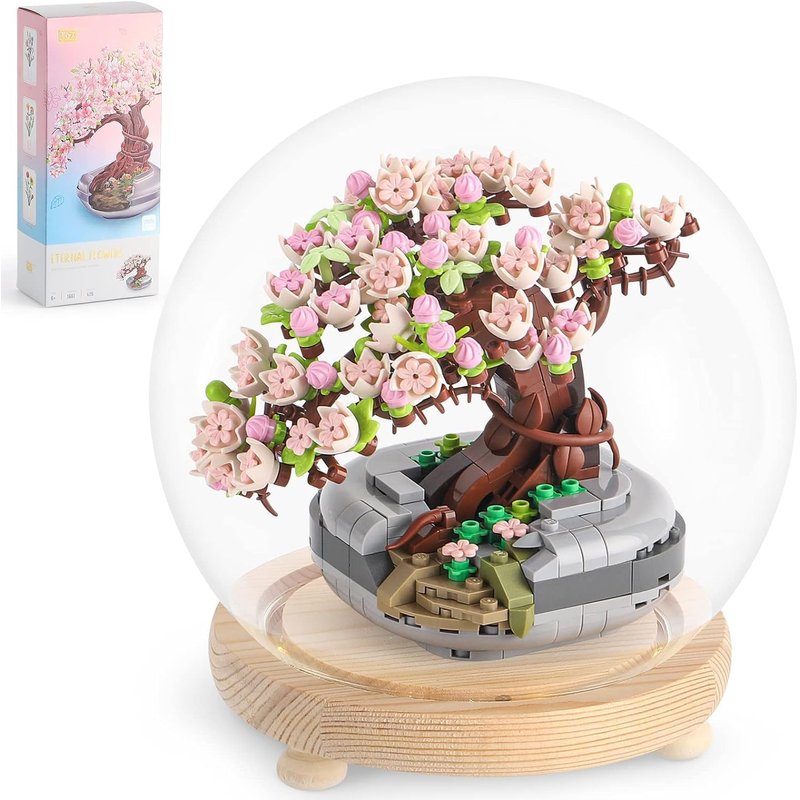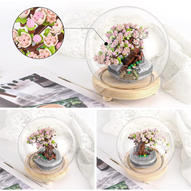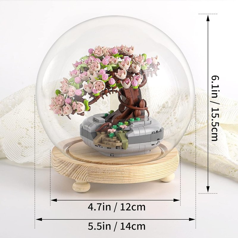 CEACYDIK Sakura Bonsai Building Kit,Flower Botanical Collection Construction Building Toy,Toy Building Block with Glass Cover,Building Blocks Set for Adults and Kids