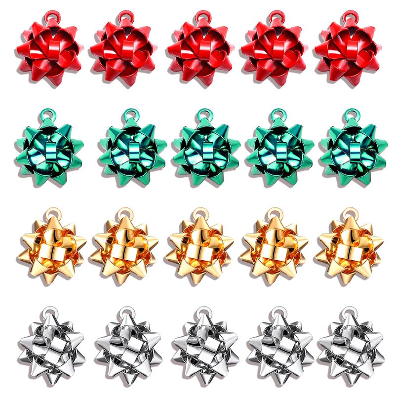 You will receive 20 pieces Xmas Bow Charms in 4 classic Christmas colors: Red, Green, Gold and Silver, which are enough for you to apply and choose.