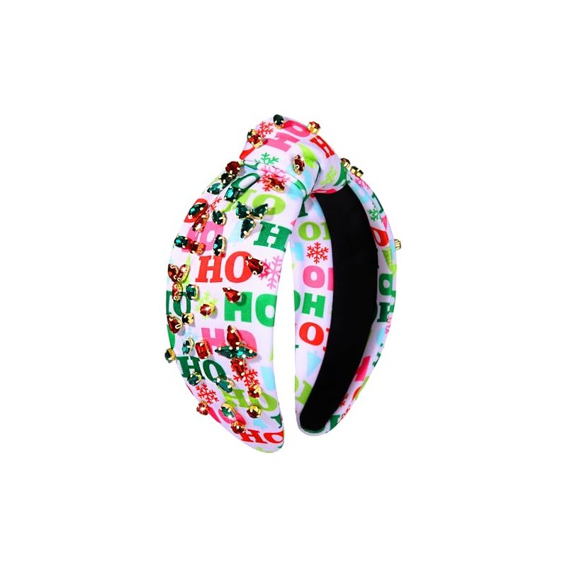 CEALXHENY Christmas Headband for Women Holiday Christmas Accessories Beaded Xmas Bow Tree Snowflake HOHOHO Knotted Headband Red Green Crystal Pearl Top Knot Headband Festive Holiday Gifts (HOHOHO 3)