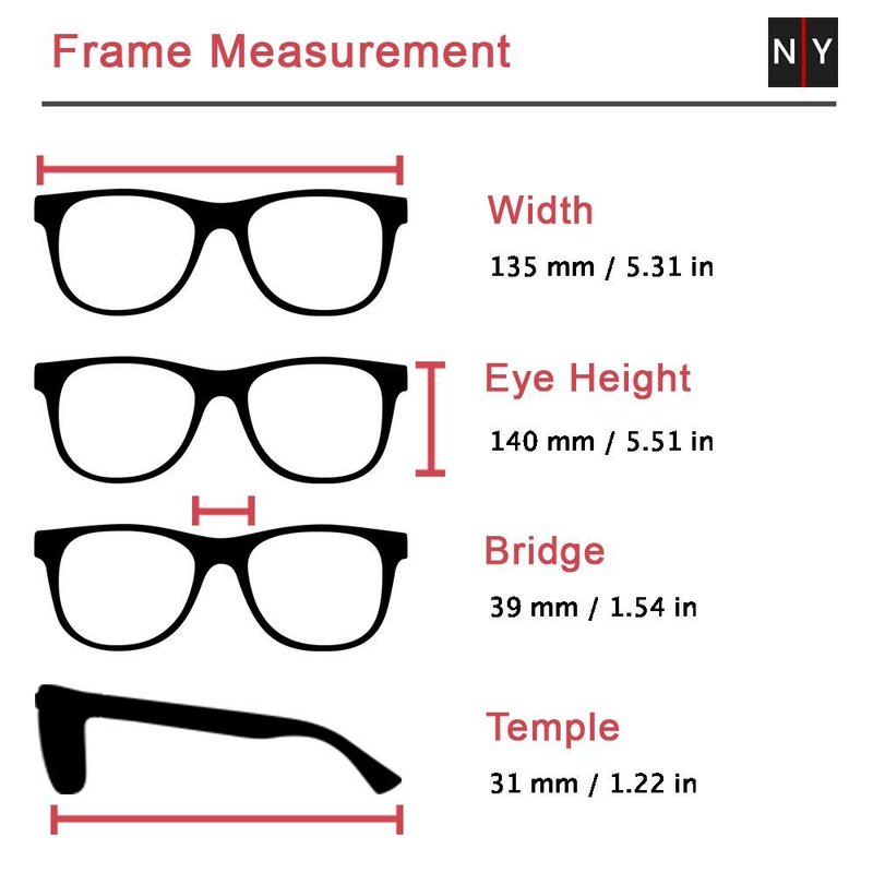 - Frame Dimension: 35-31-140 ( Lens-Bridge-Temple) mm; Width: 135 mm; Eye Height: 140 mm; Temple: 31 mm; Primary Color: brown; Secondary Colors: brown; Frame Shape: Round; Lens Type: Fully Magnified; Brand: NY Fifth Avenue