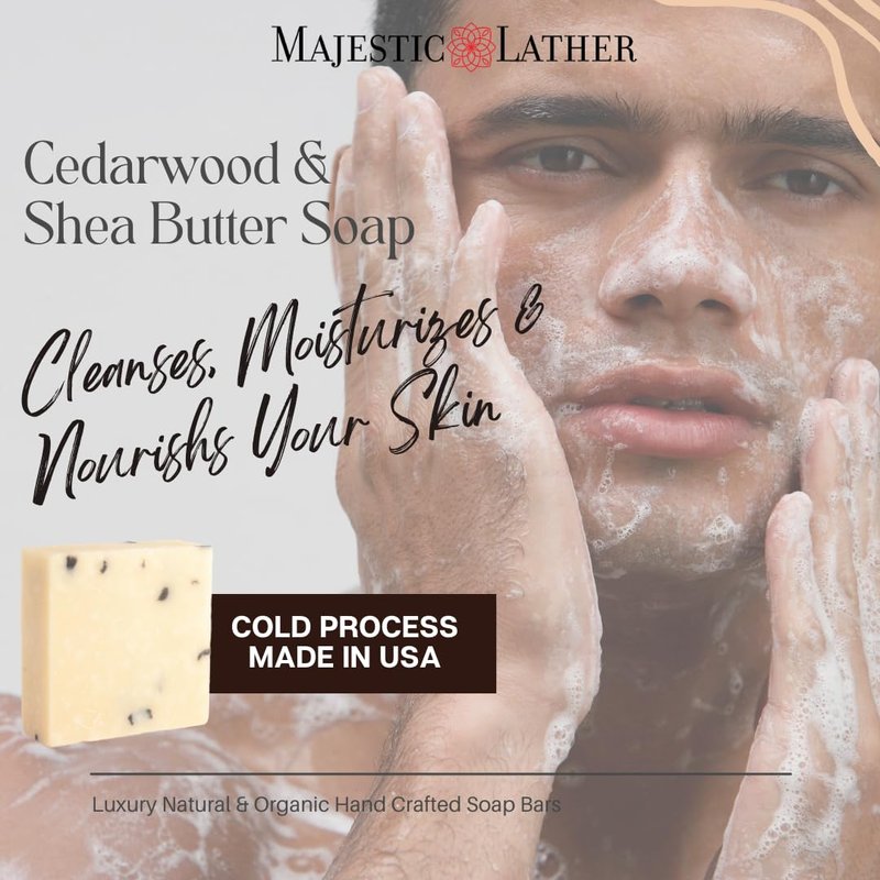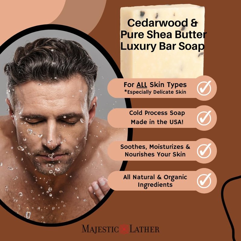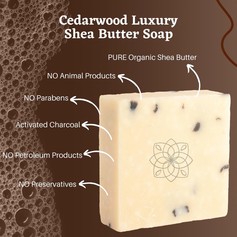 Cedarwood Luxury Handmade Bar Soap for Face & Body, Skin Soothing, Gentle Cleansing, Moisturizing & Nourishing - Shea Butter & Natural Oils. Cold Process. For All Skin Types (Men & Women). 5.0 Oz.