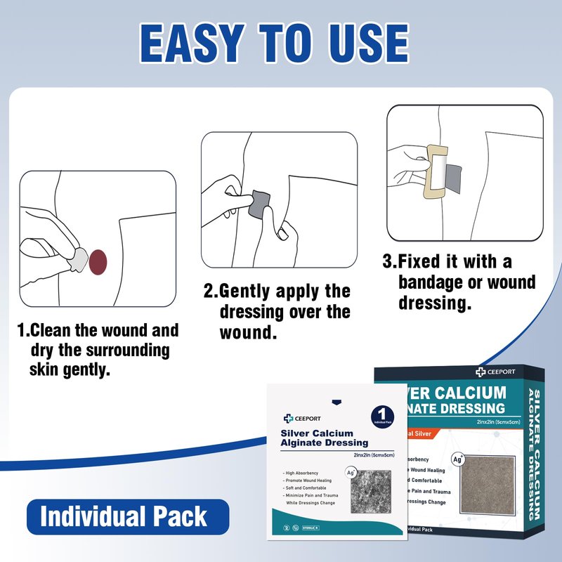 - 【Individually Packaged】The calcium alginate wound dressings with silver size: 2" x 2". The package contains 12 ag wound dressings, each in an individual package. All silver wound dressings are produced under aseptic conditions, which can keep product free from external contamination.
