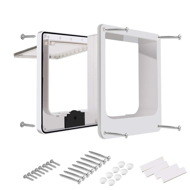 CEESC Cat Doors, Magnetic Pet Door with Rotary 4 Way Lock for Cats, Kitties and Kittens, Upgraded Version (Medium, White)