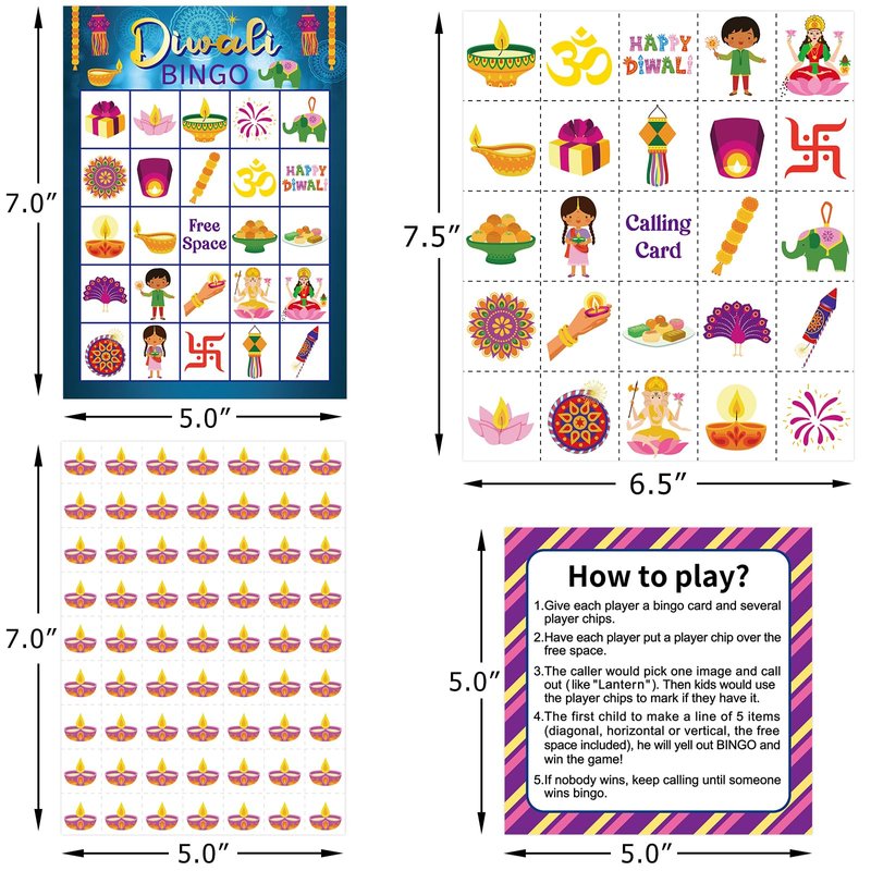 - What You Get : Diwali bingo game includes 24 game cards, 24 calling cards, 441 bingo makers and game instructions