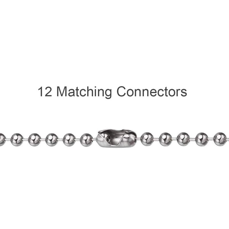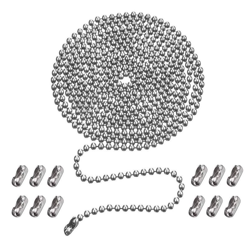 Ceiling Fan Pull Chain, 120" Rust Proof Copper 3mm Beaded Ball Light Pulls Extension Chains with 12 Connectors, Silver