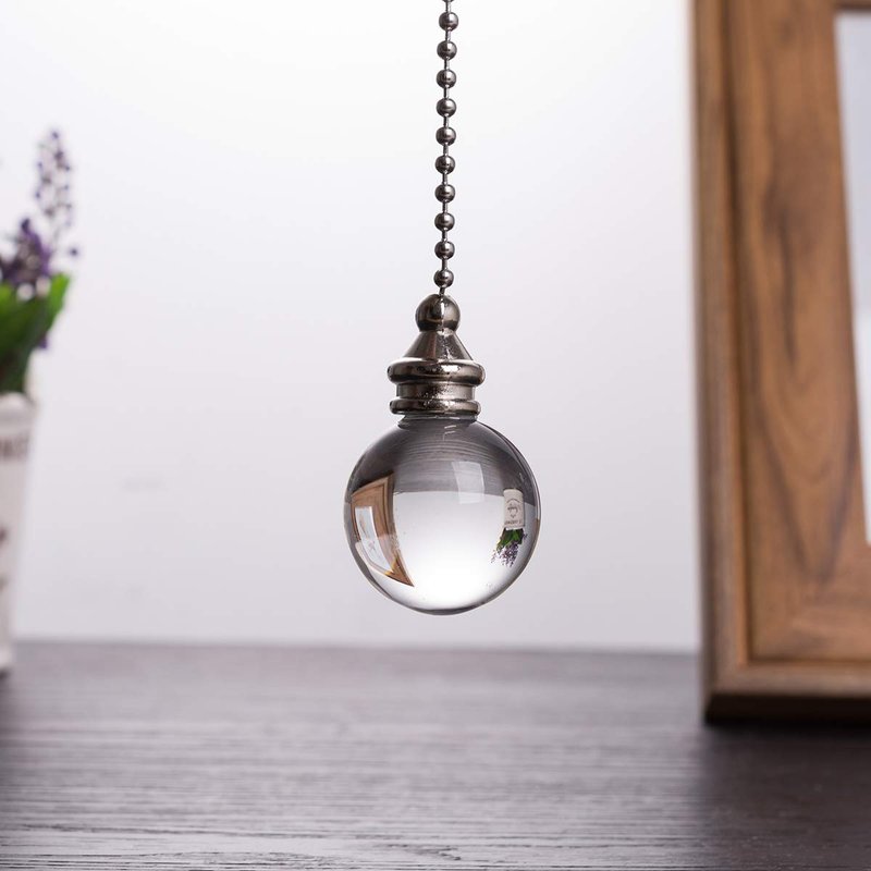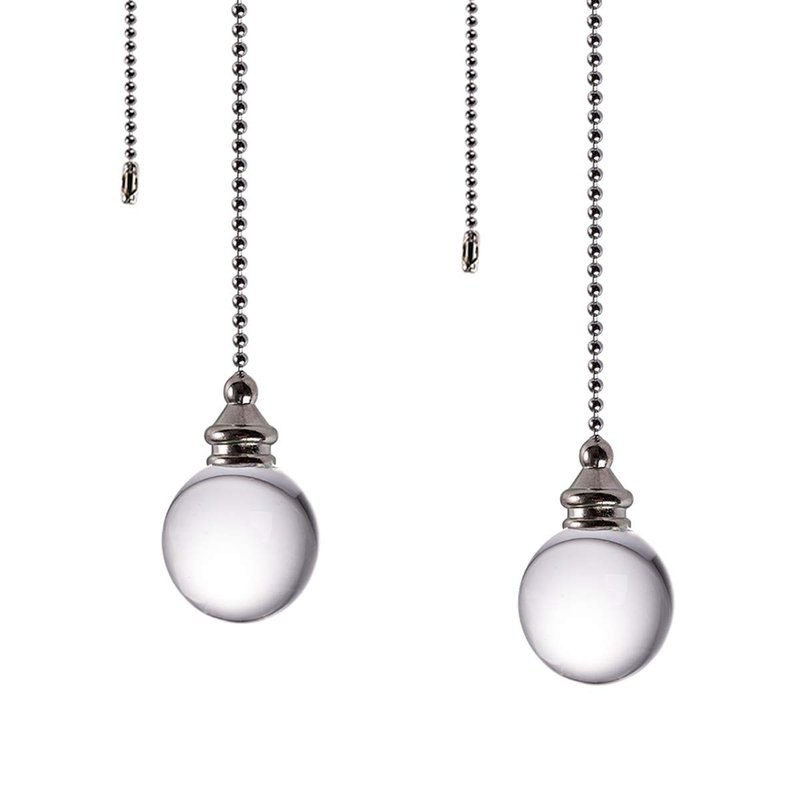 Ceiling Fan Pull Chain, 2pcs Clear 30mm Diameter Crystal Ball Fan Pull Chain, 20 Inches Fan Pulls Set with Connector Ceiling Fan Pull Chain Ornaments Lighting Accessories