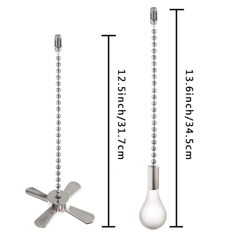 - The fan pull chains extension is 13.6 inches,adjustable in length,chains with 3mm diameter beaded ball made of copper plated ball;light and fan cord design helps you pull the right chain from.