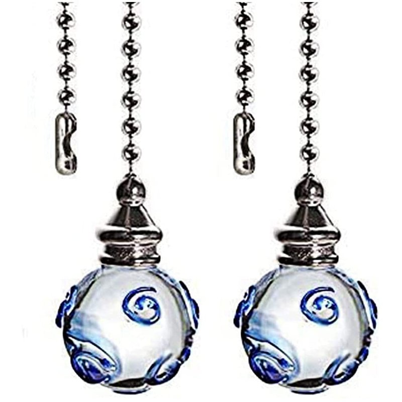Ceiling Fan Pull Chains 12 Inches Glass Fan Pulls Decorative with Blue Pattern Transparent For Ceiling Light Lamp Fan Chain (nickel) 2 Pcs
