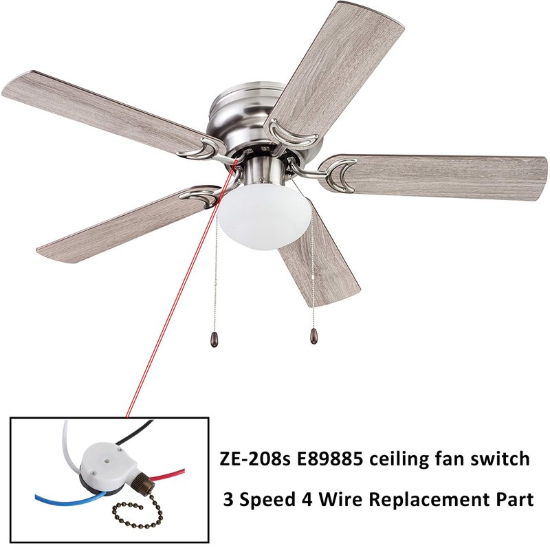 Ceiling Fan Switch ZE-208s E89885 3 Speed 4 Wire Fan Light Switch Replacement Part Speed Control Pull Chain Switch