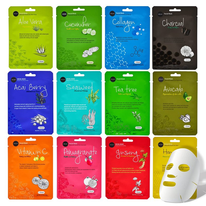 Originating in Korea & used by beauty aficionados around the globe, the Celavi sheet mask is an individually soaked paper sheet that contours to your face, locking in the treatment & ensuring maximum effectiveness. Treat yourself to a luxurious facial at the comforts of your own home. 12 Essence Set Includes - Aloe Vera, Cucumber, Collagen, Charcoal, Acai Berry, Seaweed, Tea Tree, Avocado, Vitamin C, Pomegranate, Ginseng, Honey