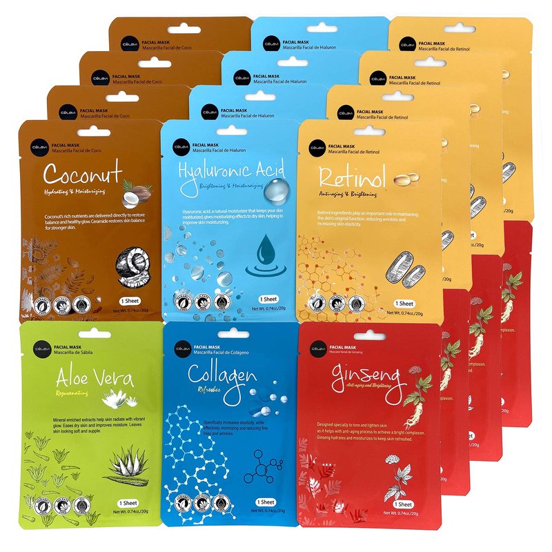 Naturally cares skin - Authentic Korean facial masks, when used regularly they can help pigmentation, circles, and puffiness. Our collagen face masks help create firmer, healthier, more balanced skin for confidence. Moisturizing Hydration - Infused with natural botanical ingredients like tea tree, cucumber, honey, charcoal, and avocado, it’s gentle on dry, oily, or sensitive skin. Revitalizing Skin Therapy - A deeply-hydrating experience, our face mask sheets infuse your skin with vital moisture while helping improve overall tone and firmness. Premier Face Mask Quality - Celavi Korean sheet masks offer safe, natural support