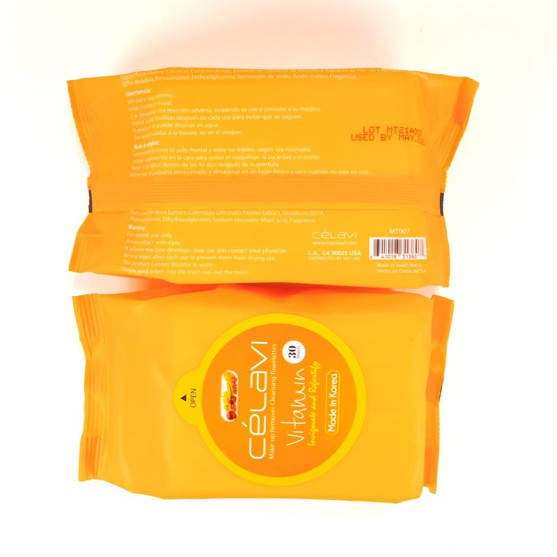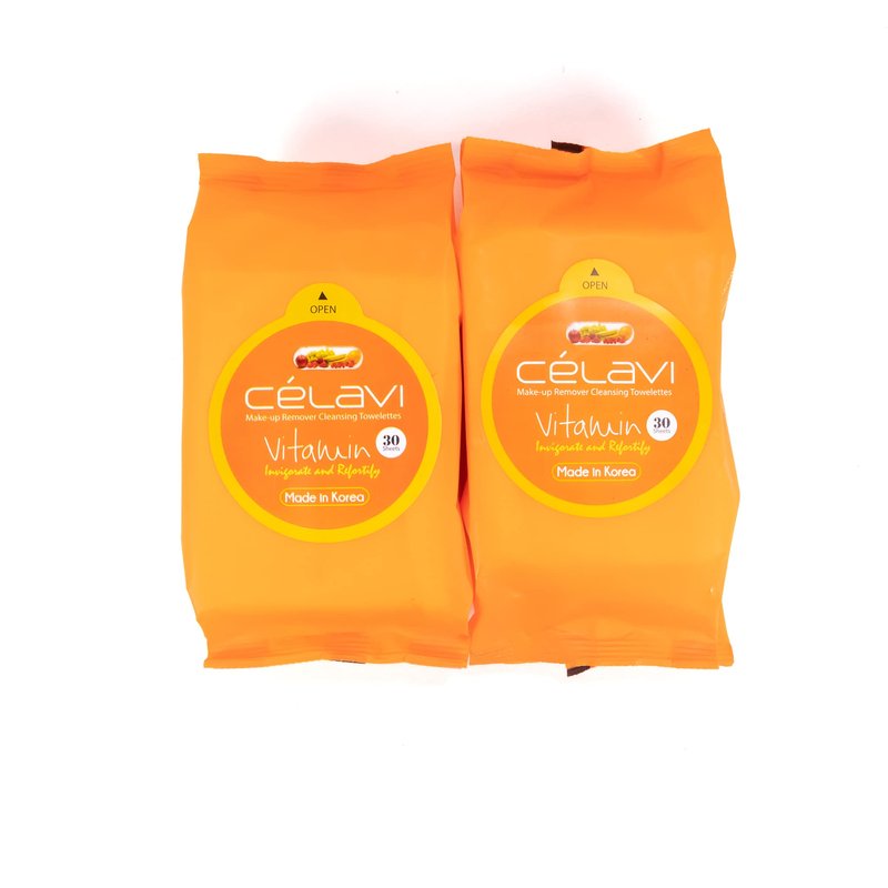 Celavi Makeup Remover Cleansing Wipes Removing Towelettes 2 Packs - 60 Sheets (Vitamin)