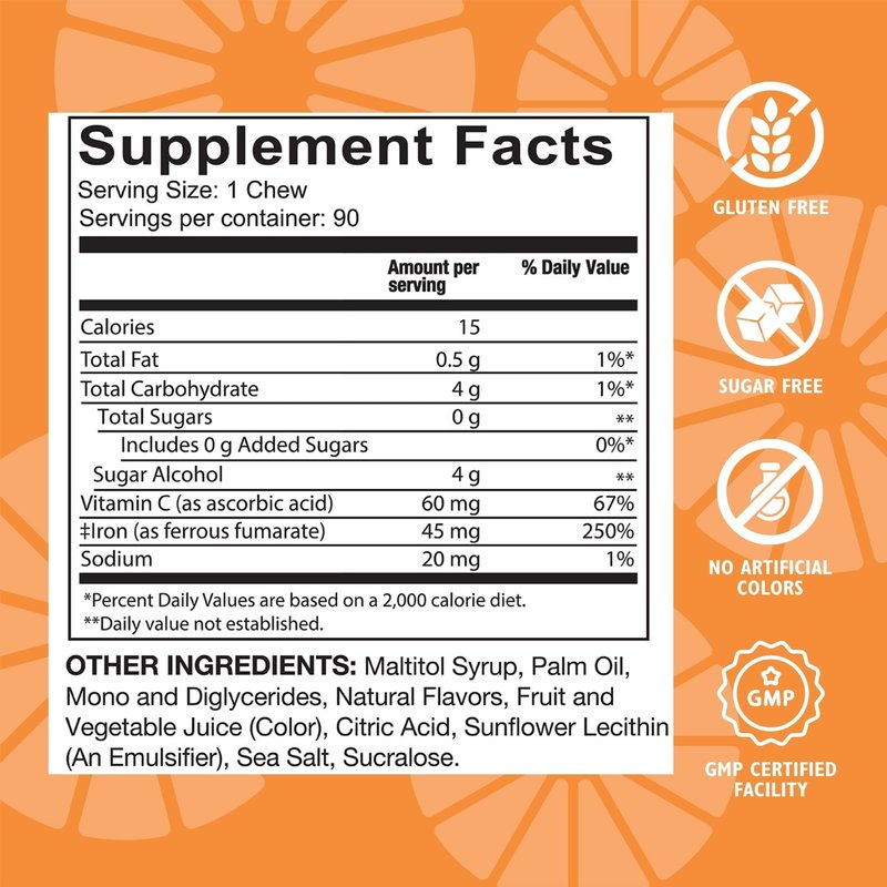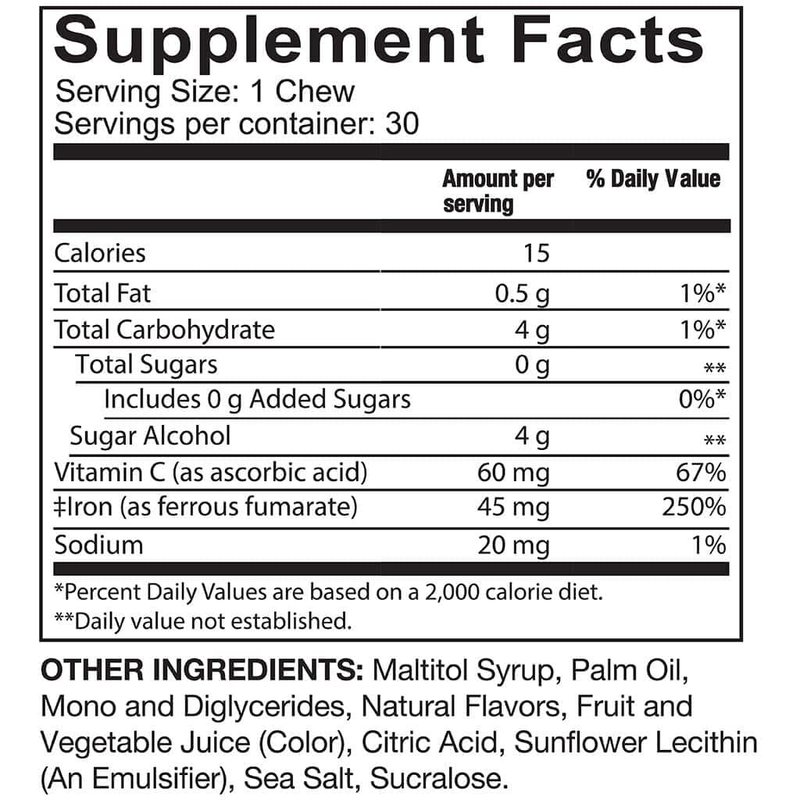 - Irresistible Flavor: Indulge in the convenience of soft chews with a delectable flavor that transforms iron supplementation into a treat you'll look forward to