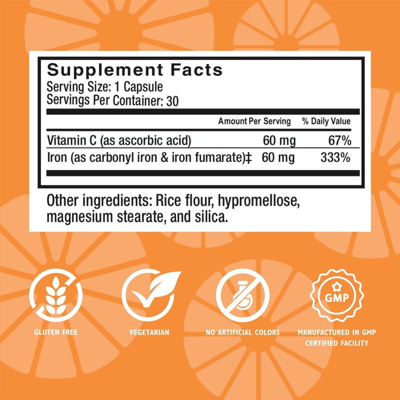- Powerful Iron Support: Iron 60 Iron with Vitamin C capsules offer a potent 60 mg dose of iron, designed specifically for patients who have undergone bariatric surgery