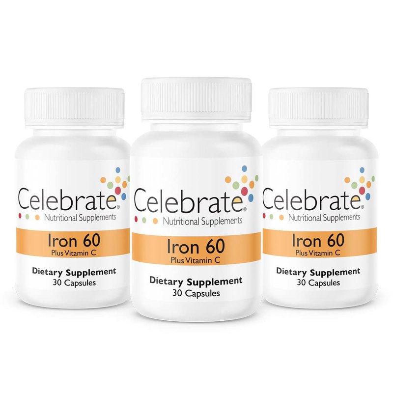 Elevate your iron supplementation with Celebrate Vitamins Iron 60 Iron with Vitamin C capsules, the ultimate solution for post-bariatric surgery patients. Packed with a potent 60 mg dose of iron, these capsules are specially formulated to meet your iron needs and prevent deficiency after surgery. With the added benefit of 60 mg of Vitamin C, our bariatric iron supplements ensure optimal absorption and utilization for maximum effectiveness. Our easy to swallow capsules offer the utmost convenience, making it effortless to integrate into your daily routine. Take 1 capsule per day, or as directed by a healthcare professional. Our Bariatric Iron 60mg capsules are vegetarian, sugar free, gluten free, and do not contain artificial colors. Celebrate Vitamins bariatric vitamins and supplements meet the recommended guidelines of the American Society for Metabolic and Bariatric Surgery and are manufactured in the USA in a GMP certified facility. A 90 count bottle is a 3 month supply. Trust in Celebrate Vitamins Iron 60 Iron with Vitamin C capsules and take charge of your iron levels with confidence.