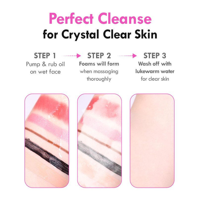 This oil makeup remover cleanser effortlessly melts away makeup upon contact with your skin. The fresh texture delicately embraces your complexion, dissolving impurities with finesse. With a touch of water, this exfoliating cleanser transforms into a luxuriously soft foam that gently purifies, revitalizes, and leaves your skin feeling invigorated and pampered.