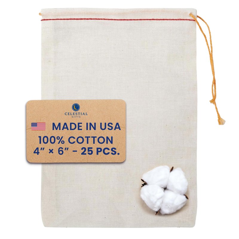 - LONG-LASTING SUPPLY FOR ALL YOUR NEEDS: Celestial Gifts provides a generous supply of natural-colored Cotton Muslin Bags with Drawstrings, proudly made in the USA. Available in bulk, these multipurpose cotton drawstring bags cater to all your storage and gifting needs. Customize them to create unique gift bags, tea bags, spice bags, or cloth gift bags. Embrace the abundant quantity and exceptional quality of our reusable cotton muslin bags.