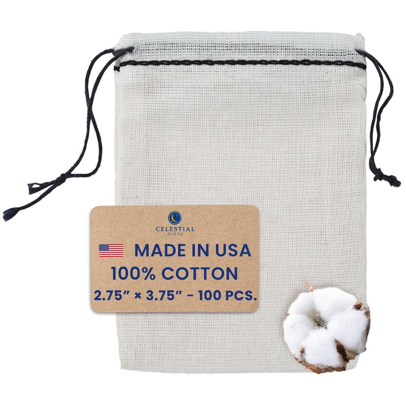 - DURABLE DRAWSTRING BAGS: Our Cotton Muslin Bags with Drawstrings, proudly made in the USA by Celestial Gifts, are designed to last. Crafted from high-quality cotton, they are perfect for storing jewelry, herbs, or spices. These bags are not only sturdy but also versatile, making them an excellent choice for your drawstring gift bag needs.