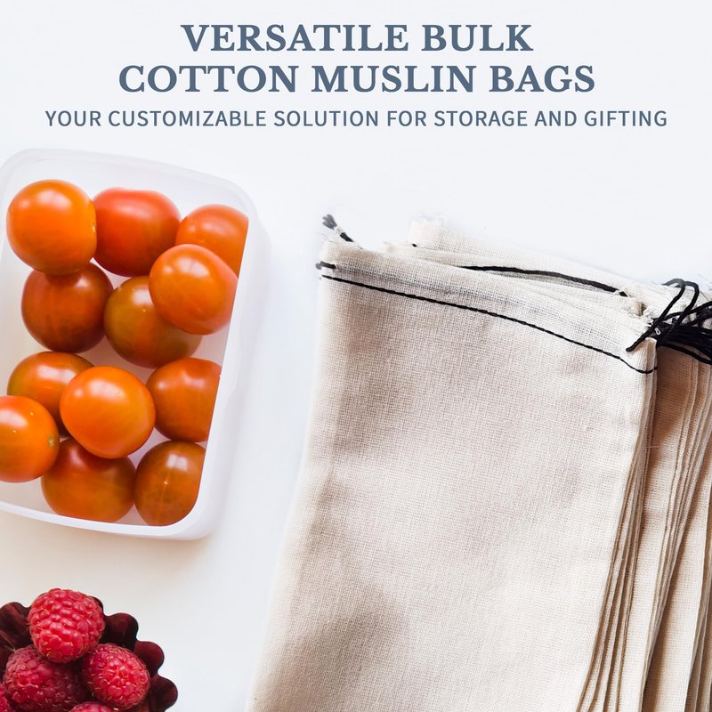 - SECURE AND VERSATILE: Our Cotton Muslin Bags feature reliable drawstring closures, ensuring your items are securely stored. Whether you're using them as cheese cloth bags for straining, reusable tea bags, or spice bags for cooking, these versatile muslin bags keep your contents safe and fresh.