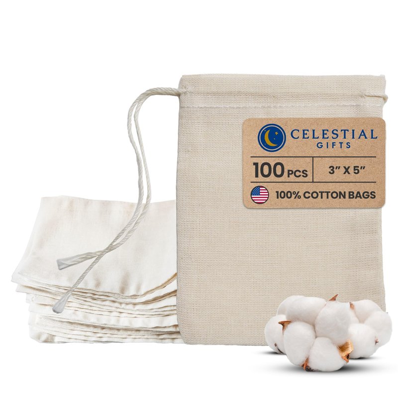 - LONG-LASTING SUPPLY FOR ALL YOUR NEEDS: Celestial Gifts provides a generous supply of natural-colored Cotton Muslin Bags with Drawstrings, proudly made in the USA. Available in bulk, these multipurpose bags cater to all your storage and gifting needs. Customize them to create unique gift bags, tea bags, spice bags, or cloth gift bags. Embrace the abundant quantity and exceptional quality of our reusable cotton muslin bags.