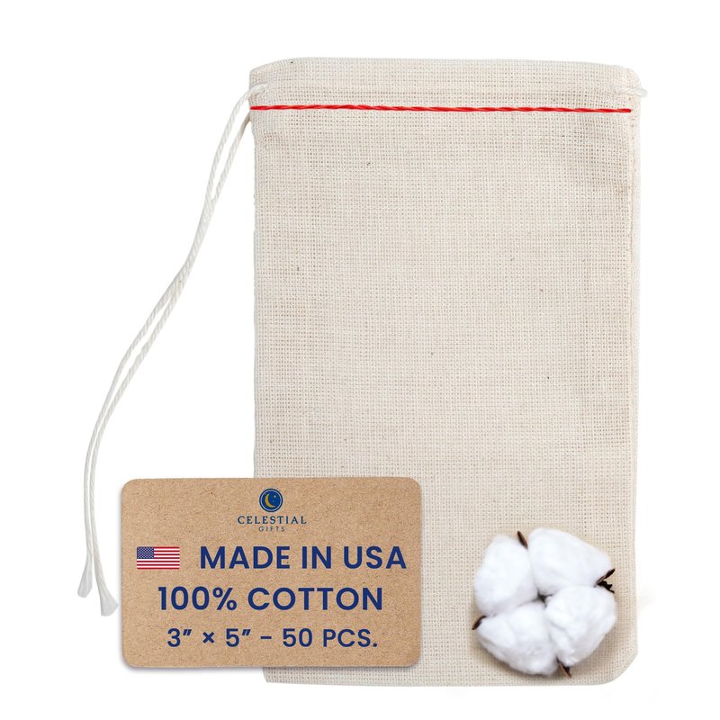 - LONG-LASTING SUPPLY FOR ALL YOUR NEEDS: Celestial Gifts provides a generous supply of natural-colored Cotton Muslin Bags with Drawstrings, proudly made in the USA. Available in bulk, these multipurpose bags cater to all your storage and gifting needs. Customize them to create unique gift bags, tea bags, spice bags, or cloth gift bags. Embrace the abundant quantity and exceptional quality of our reusable cotton muslin bags.