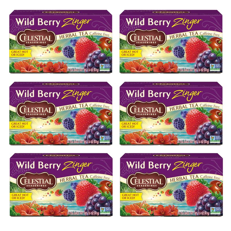 Celestial Seasonings Wild Berry Zinger Herbal Tea, Caffeine Free, 20 Tea Bags Box, (Pack of 6)