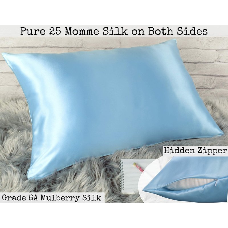 Celestial Silk 100% Silk Pillowcase for Hair Zippered Luxury 25 Momme Mulberry Silk Charmeuse Silk on Both Sides of Pillow Cover -Gift Wrapped- (King, ICY Blue)