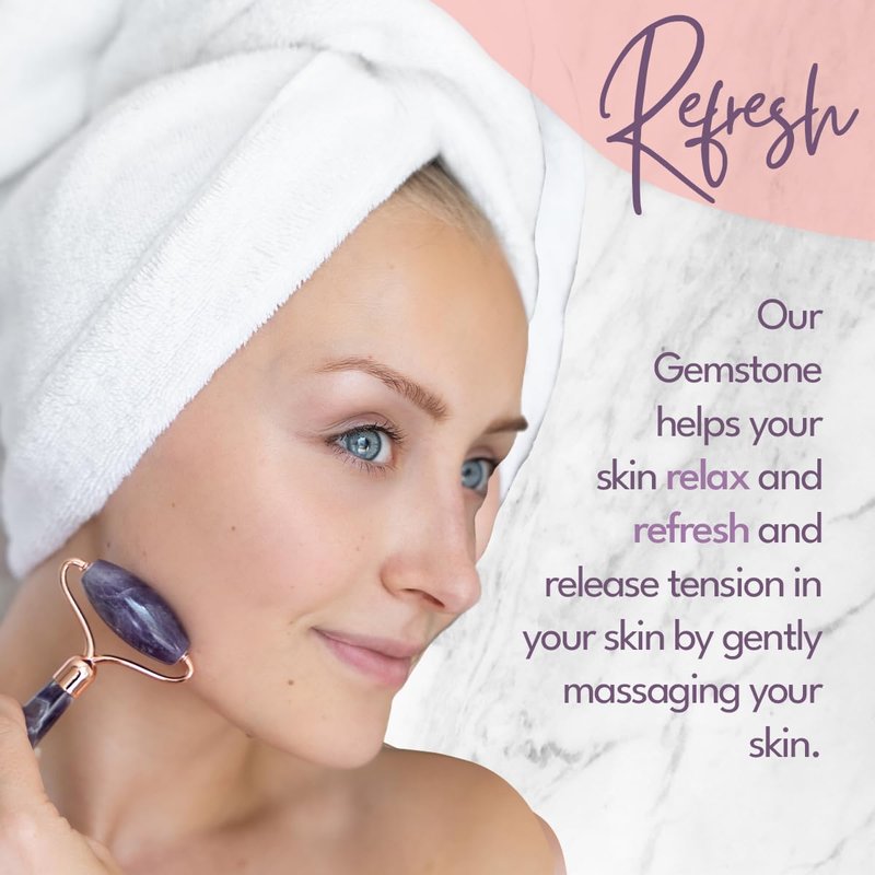 - Our Amethyst Facial Roller Feels Cool Against the Skin - The roller massages & stimulates lymphatic drainage, and causes blood vessels to contract which reduces the appearance of fine lines and puffiness