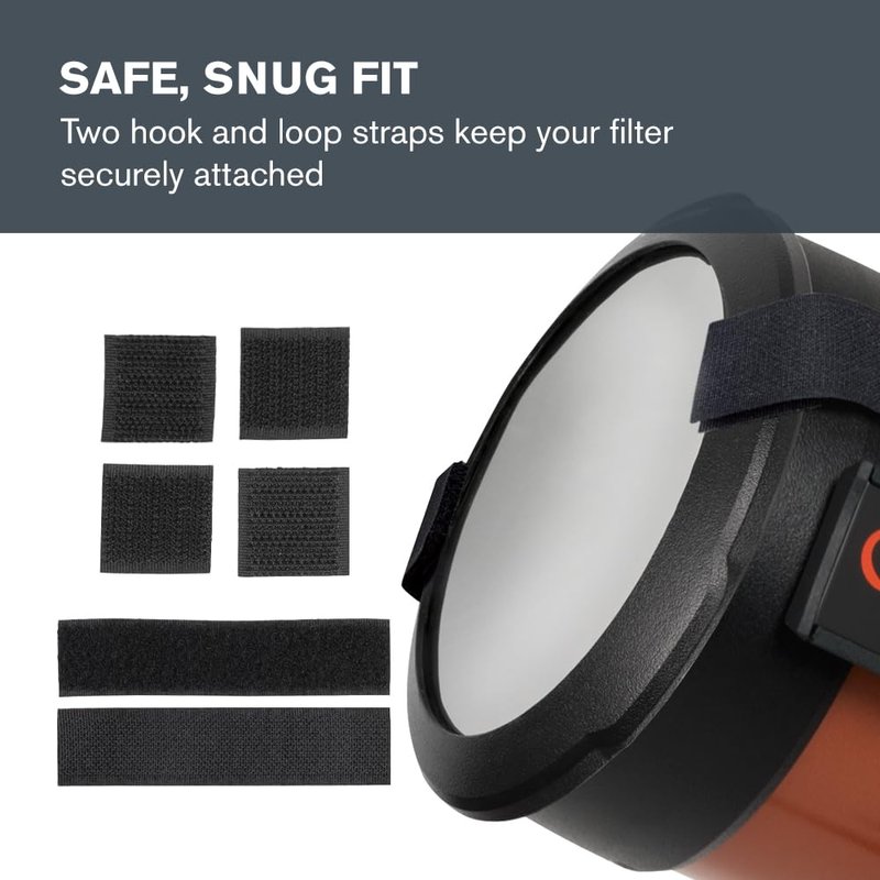 - SAFE, SNUG FIT: Two hook and loop straps keep your filter securely attached to your telescope’s objective.