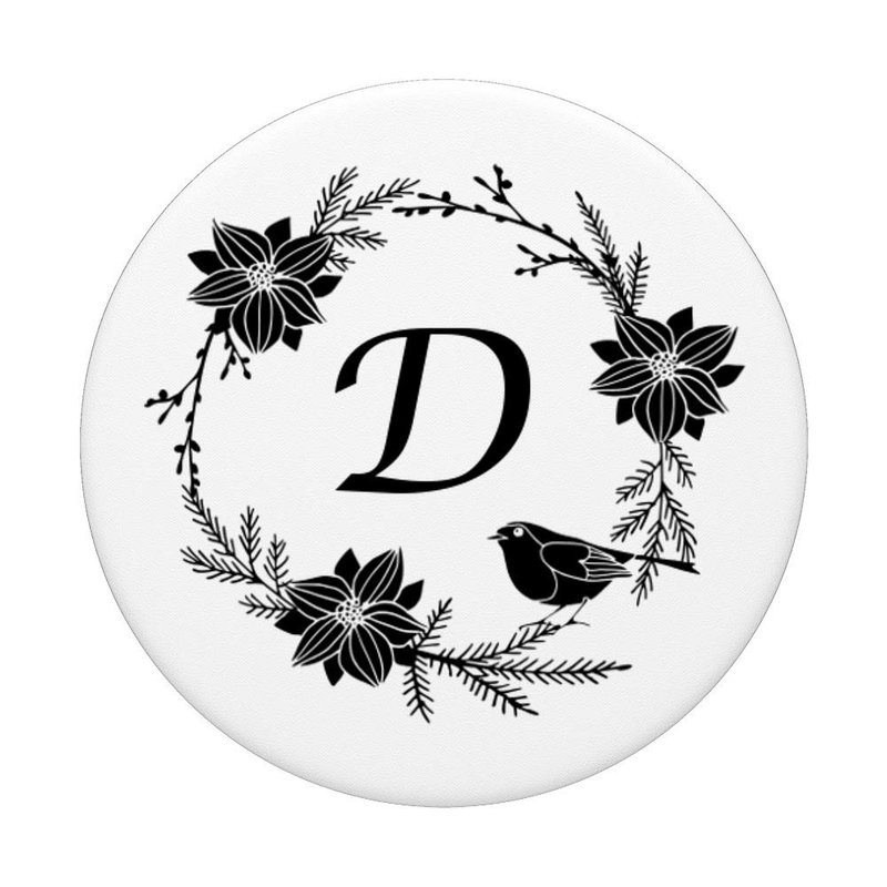 - Matte white & black flower pattern wandering wildflowers floral print with initial D phone circle grip.Black bird design round finger phone holder popup back button gripper for hand,pop phone grip,cellphone car mount,expanding stands for smartphones,tablet