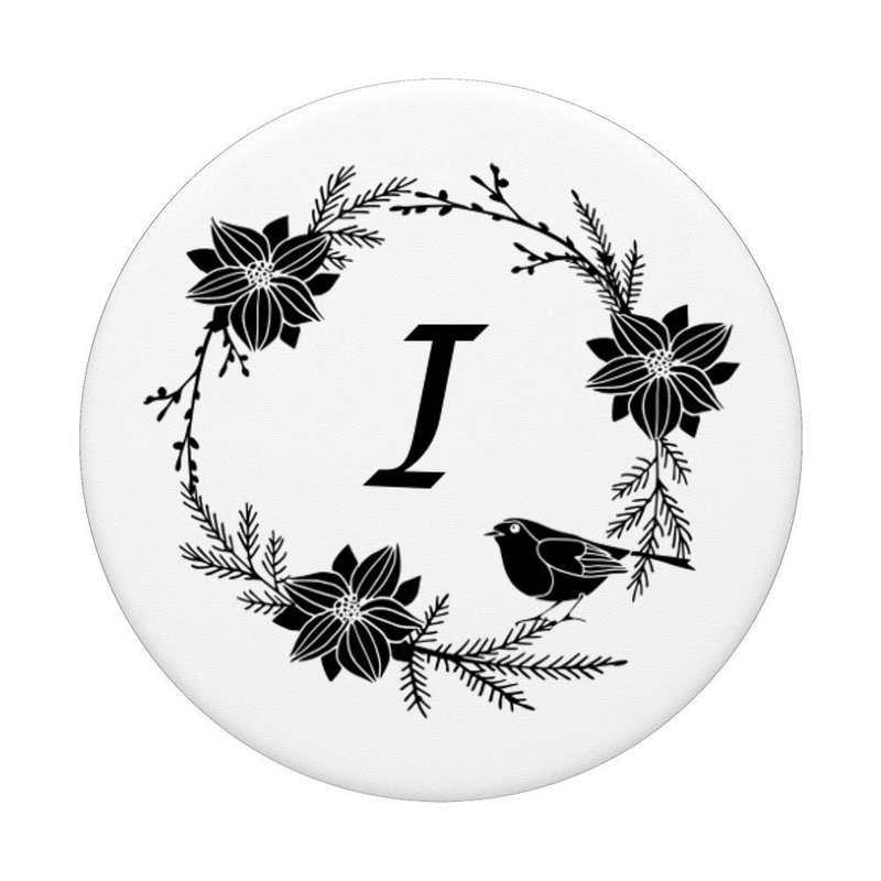 - Matte white & black flower pattern wandering wildflowers floral print with initial I phone circle grip.Black bird design round finger phone holder popup back button gripper for hand,pop phone grip,cellphone car mount,expanding stands for smartphones,tablet