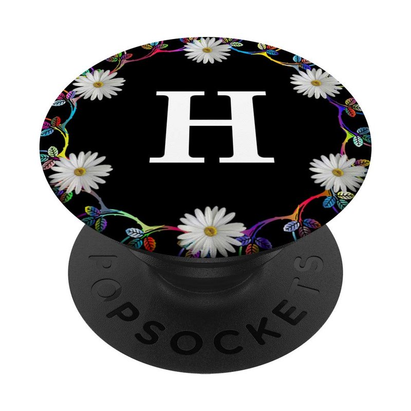 - Cute daisy flower pattern wandering wildflowers floral print monogram initial H phone circle grip.Daisy white rainbow ring round finger phone holder popup back button gripper for hand,phone grip,cellphone car mount,expanding stands for smartphones,tablet.