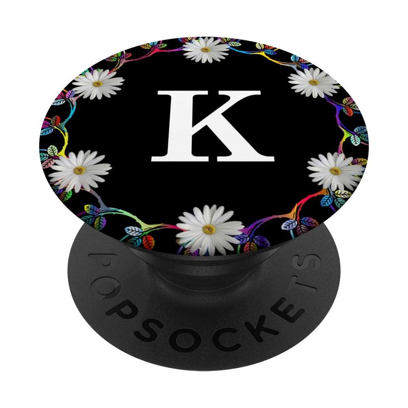- Cute daisy flower pattern wandering wildflowers floral print monogram initial K phone circle grip.Daisy white rainbow ring round finger phone holder popup back button gripper for hand,phone grip,cellphone car mount,expanding stands for smartphones,tablet.