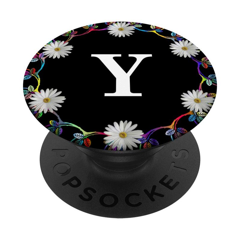 Cell Phone Pop Out Holder,Black White Daisy Flower Letter Y PopSockets Grip and Stand for Phones and Tablets