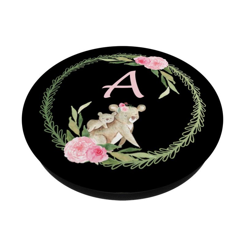 - Koalas design for girls,women phone circle grip with monogram initial A.Rose pink blush vintage floral print pressed flowers round finger phone holder popup back button gripper for hand,phone grip,cellphone car mount,expanding stands for smartphones,tablet