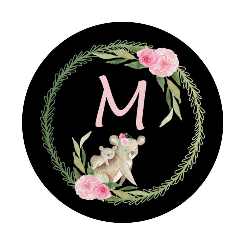 - Koalas design for girls,women phone circle grip with monogram initial M.Rose pink blush vintage floral print pressed flowers round finger phone holder popup back button gripper for hand,phone grip,cellphone car mount,expanding stands for smartphones,tablet