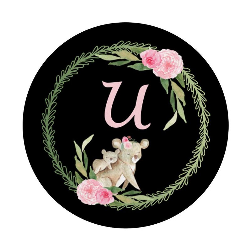 - Koalas design for girls,women phone circle grip with monogram initial U.Rose pink blush vintage floral print pressed flowers round finger phone holder popup back button gripper for hand,phone grip,cellphone car mount,expanding stands for smartphones,tablet