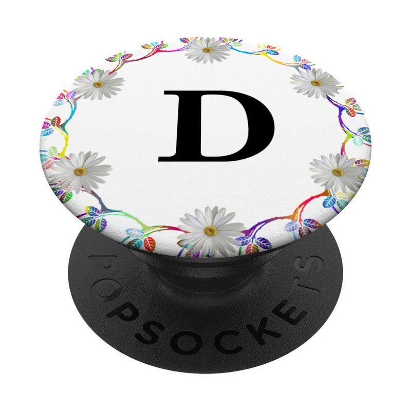 Cell Phone Pop Out Holder,Floral White Daisy Flower Letter D PopSockets Grip and Stand for Phones and Tablets