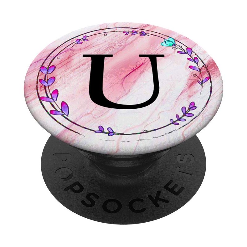 - Matte white purple light pink teal flower print swirl pattern with initial U for girls,women.Cool monogram gifts watercolor flowers design ring round finger phone holder popup back button gripper for hand,pop phone grip,cellphone expanding stands,car mount