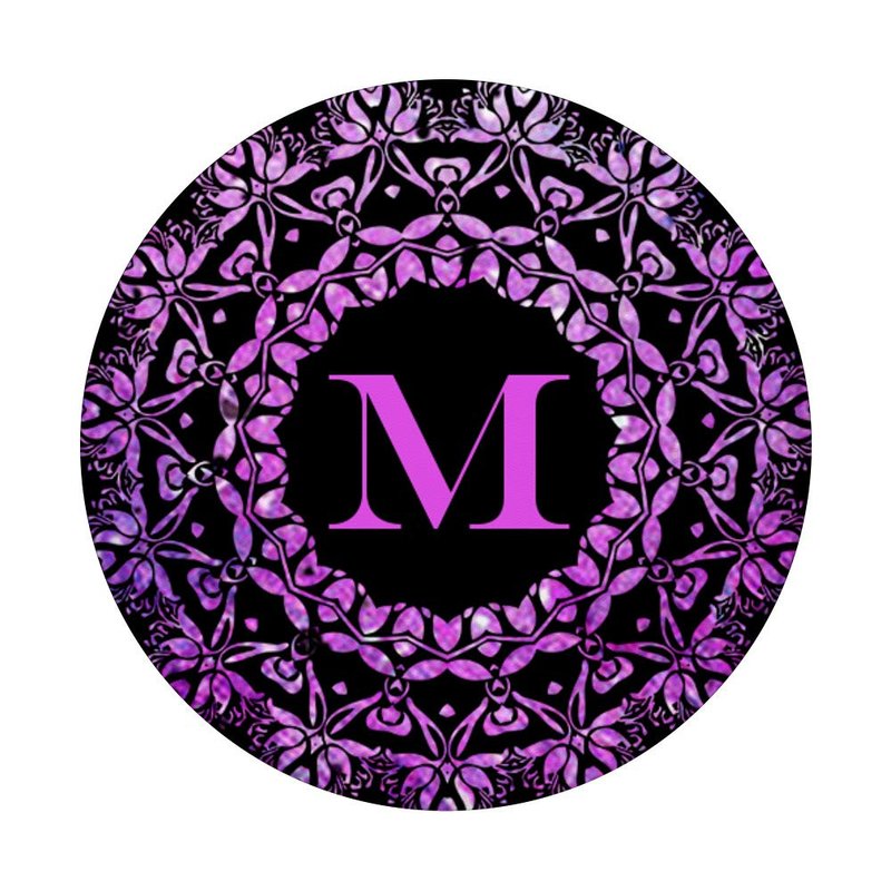 - Cute girly pink watercolor purple mandala sky cell phone circle grip with letter M.Flower mandala floral print round popup finger gripper for hand,back phone holder button,pop out phone grip,cellphone car mount,tablet stands,expanding stand for smartphones