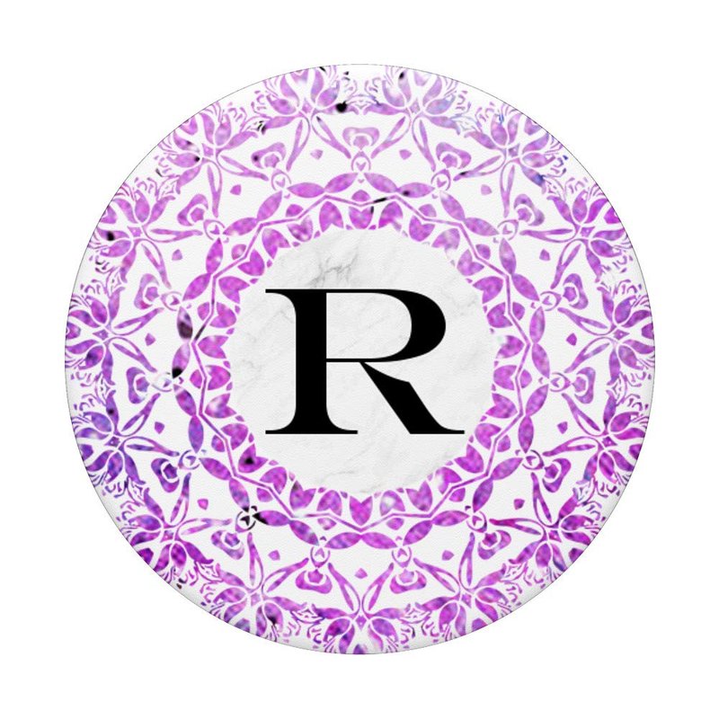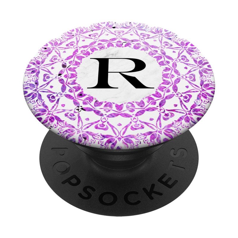 - Cute girly pink watercolor purple mandala sky cell phone circle grip with letter R.Flower mandala floral print round popup finger gripper for hand,back phone holder button,pop out phone grip,cellphone car mount,tablet stands,expanding stand for smartphones