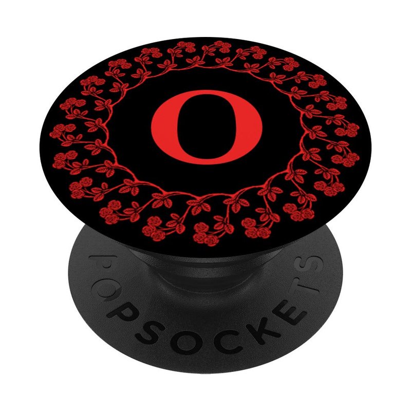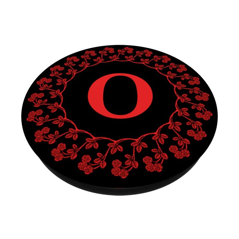 - Red rose flower design wandering wildflowers flower pattern monogram with initial O phone circle grip.Black red flowers ring round finger phone holder popup back button gripper for hand,phone grip,cellphone car mount,expanding stands for smartphones,tablet