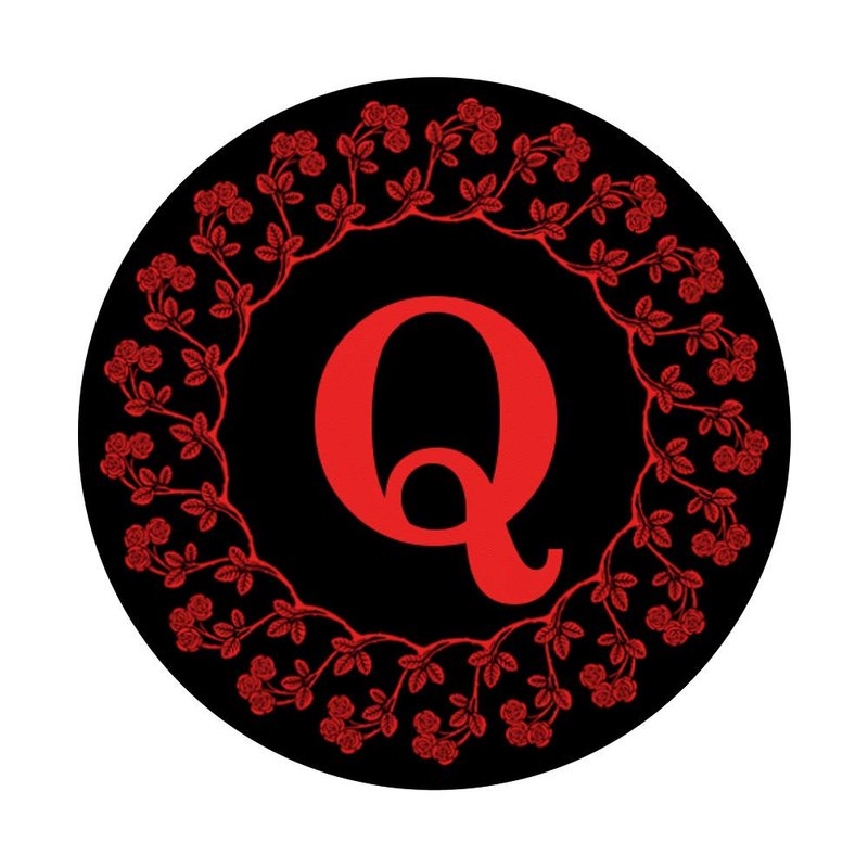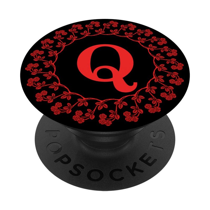 Cell Phone Pop Up Holder,Cute Red Rose Floral Letter Q Black PopSockets PopGrip: Swappable Grip for Phones & Tablets