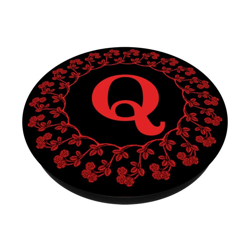 - Red rose flower design wandering wildflowers flower pattern monogram with initial Q phone circle grip.Black red flowers ring round finger phone holder popup back button gripper for hand,phone grip,cellphone car mount,expanding stands for smartphones,tablet