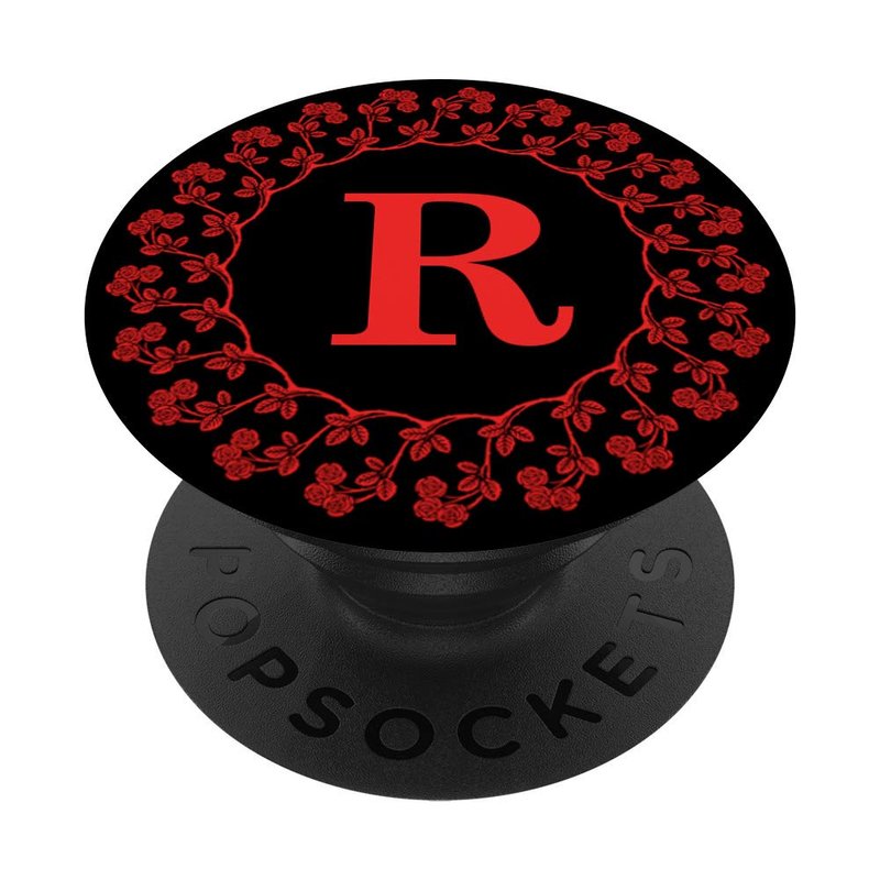 - Red rose flower design wandering wildflowers flower pattern monogram with initial R phone circle grip.Black red flowers ring round finger phone holder popup back button gripper for hand,phone grip,cellphone car mount,expanding stands for smartphones,tablet