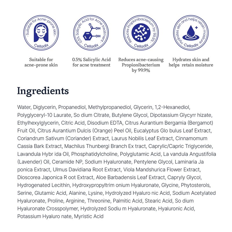 Celladix Acne Control 131 Gel Cleanser | Acne Treatment | 99% Propionibacterium Acnis Removal | 0.5% Salicylic Acid Cleanser for Oily Skin | Hydrates Skin | Glycerin FREE Acne Cleanser | 3.71 Fl Oz