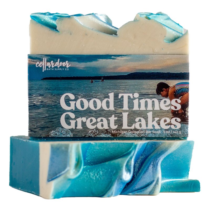 This 3-pack of bar soaps features a variety of unisex scents from the Cellar Door Michigan Collection including: Mackinac Island Lilac, Good Times Great Lakes, Leelanau Sunset. Our soap is plant-based, cruelty-free, and free of synthetic dyes and detergents, poured in small batches using the cold process method giving you a non-drying lather with out of this world scents. Scent Notes: Mackinac Island Lilac - lilac blossoms. white musk. weeping willow. | Good Times Great Lakes - fresh rain. eucalyptus. spearmint leaves. | Leelanau Sunset - coconut water. pineapple. sugar cane. tonic.