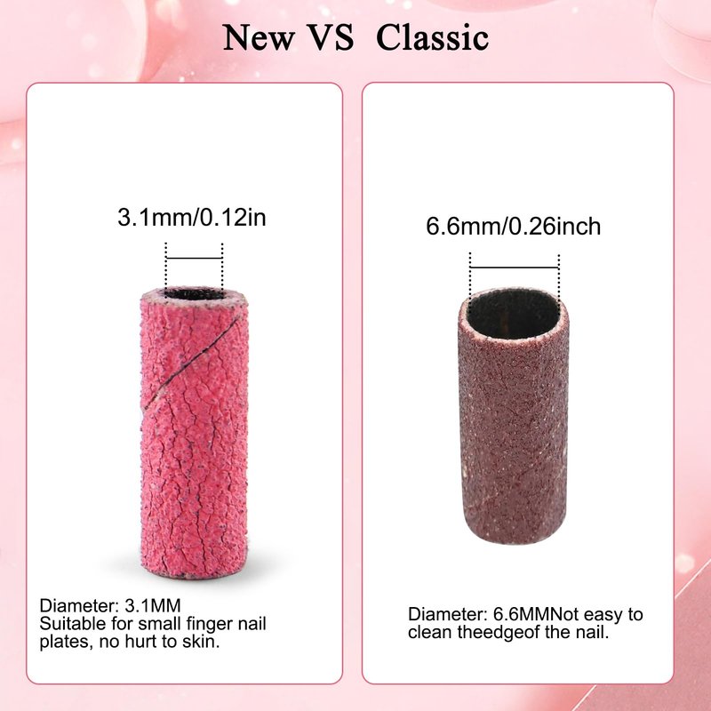 - π [Better Accuracy & More Safety] -- This small sanding bands set for nail drill is designed for precise and detailed nail shaping, and provide optimal finesse. Easy to control during nail grinding and no harm to the skin around the nail plate, perfectly for small nail bed.